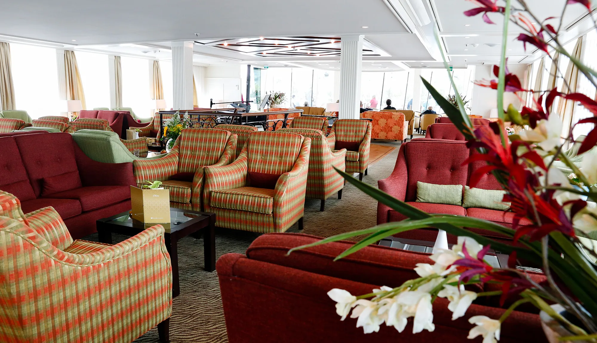 Public areas on the ship include a sun deck with a heated pool, a fitness room, and a stylish lounge where travelers can relax with a cocktail while enjoying panoramic views of the surrounding landscapes. There’s also a massage room and beauty salon, offering pampering experiences to enhance the overall journey.