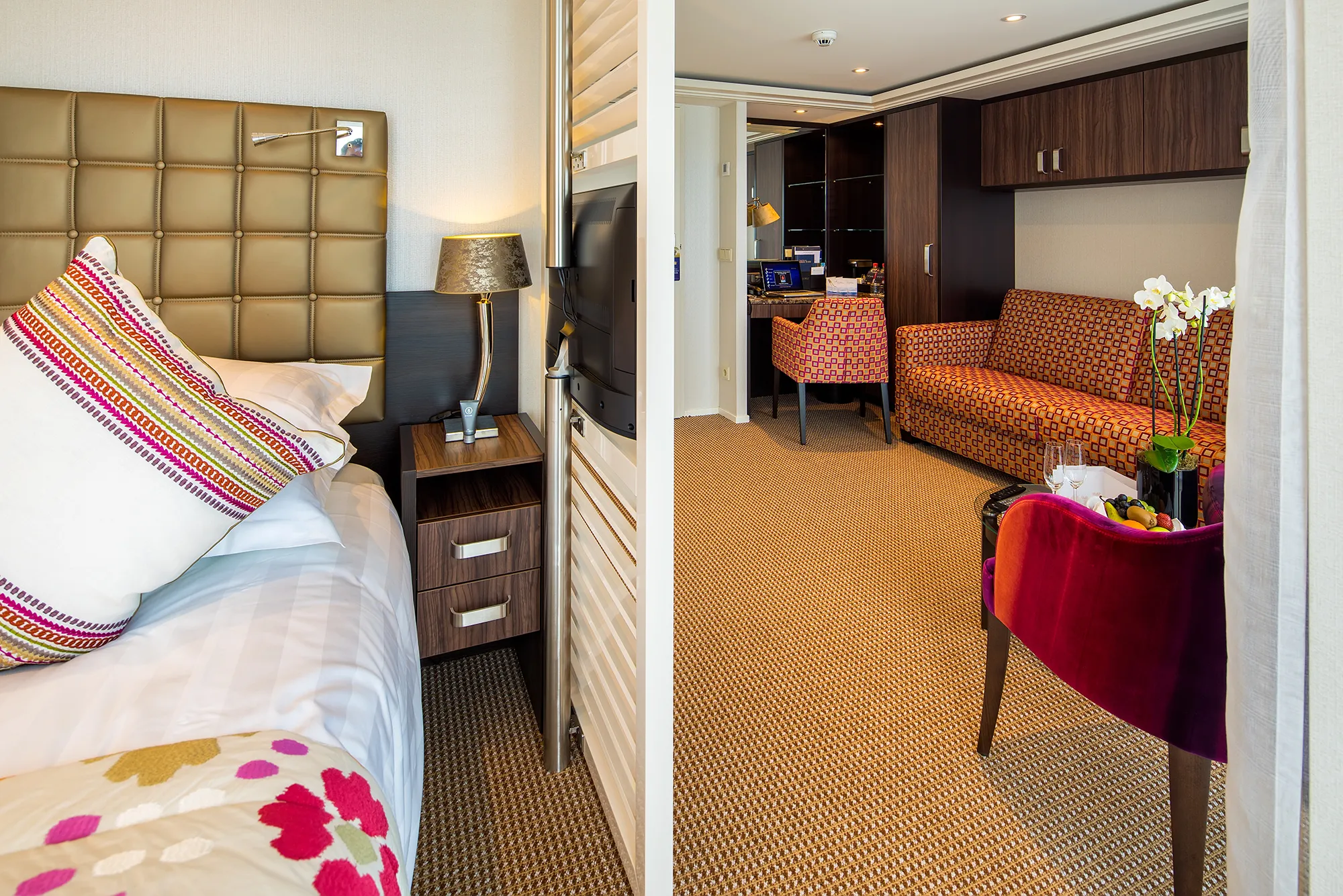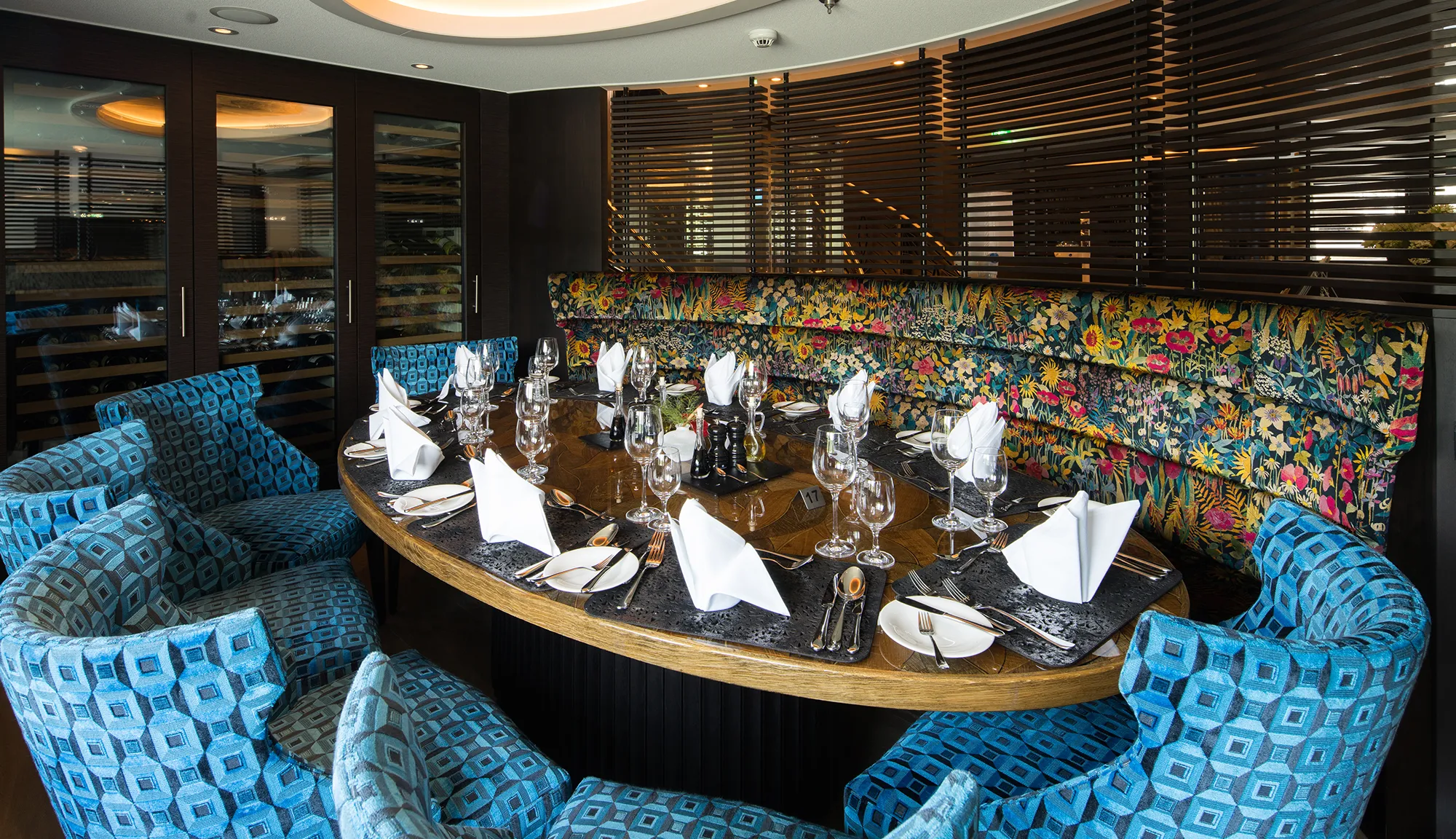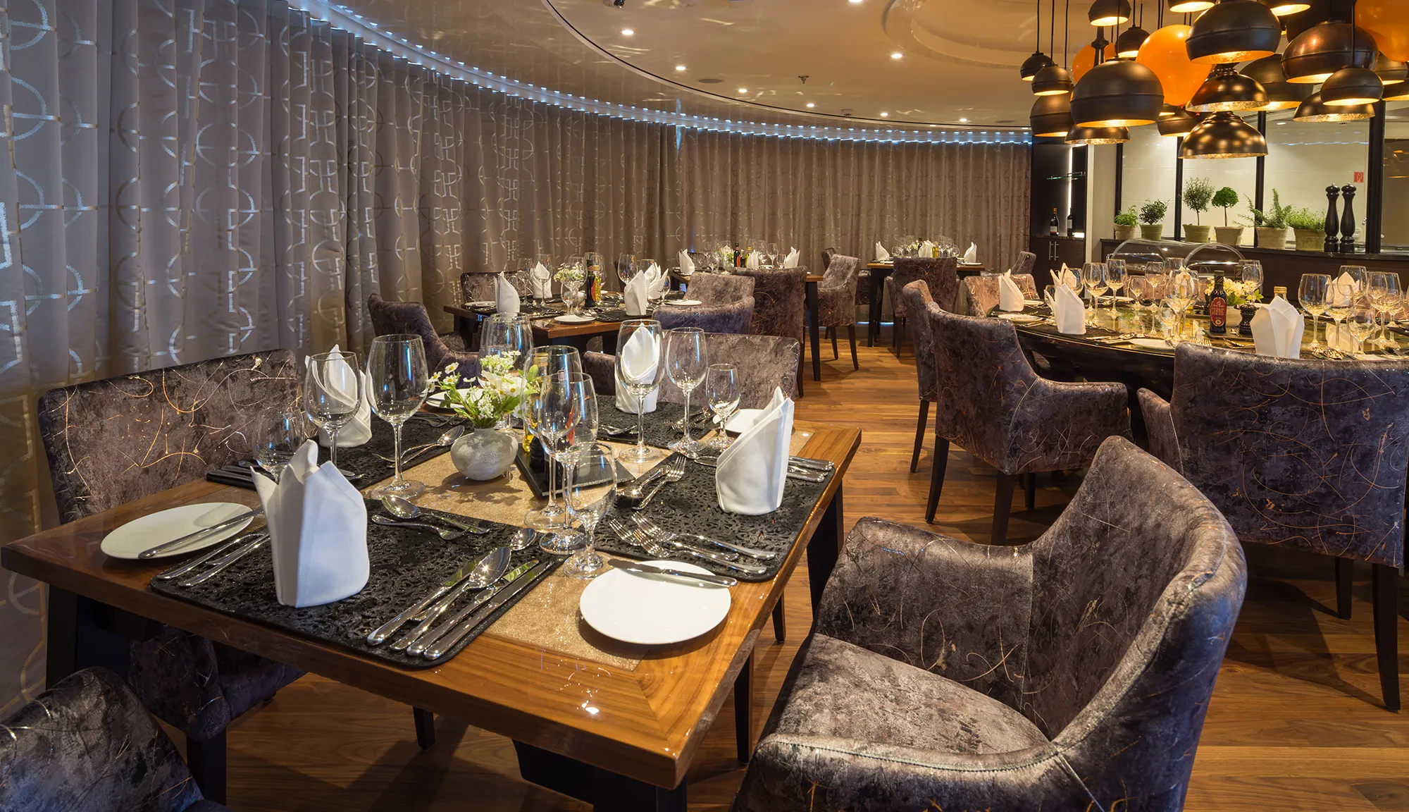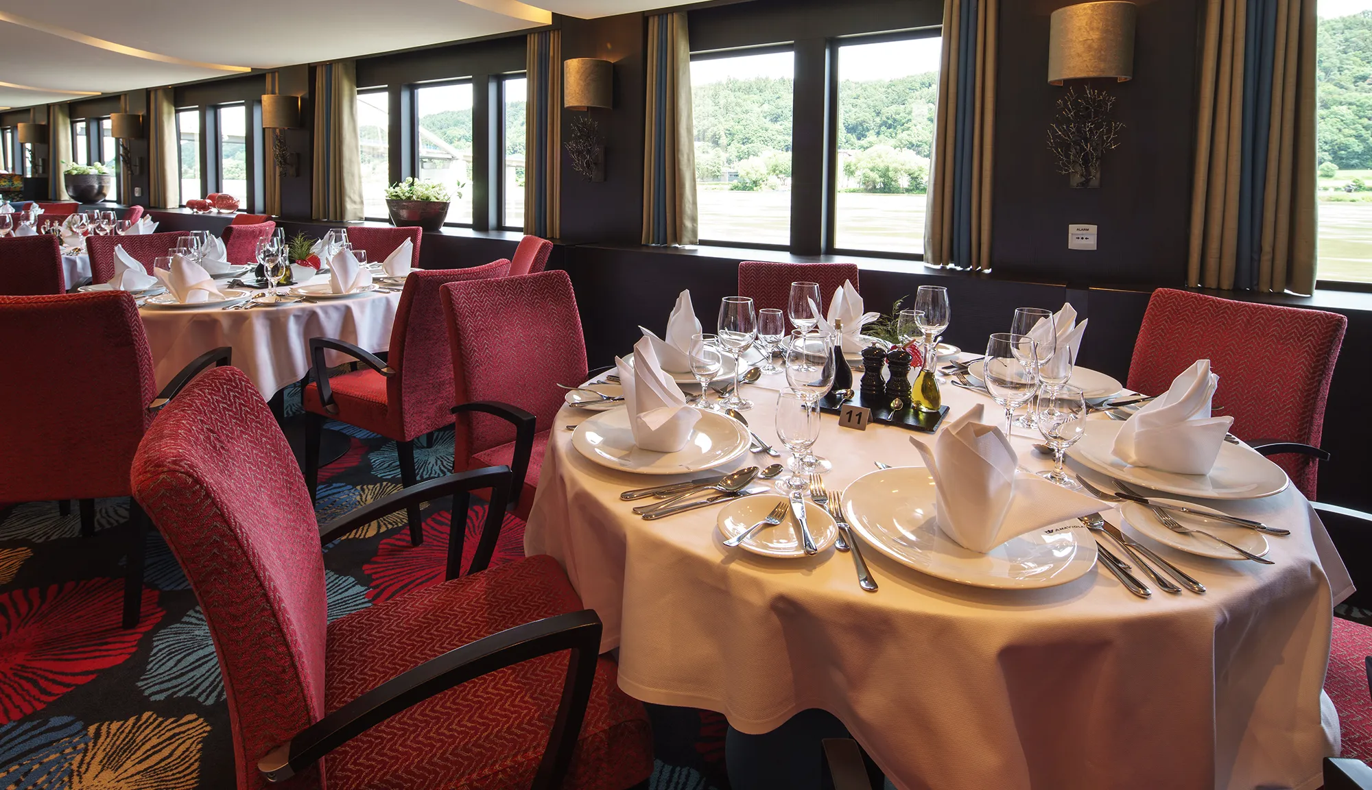 Guests can dine in the main restaurant, where breakfast, lunch, and dinner are served in a refined yet casual atmosphere. The Chef’s Table specialty restaurant offers an intimate and elevated dining experience, complete with multi-course tasting menus and wine pairings, carefully selected from the local regions visited during the cruise.