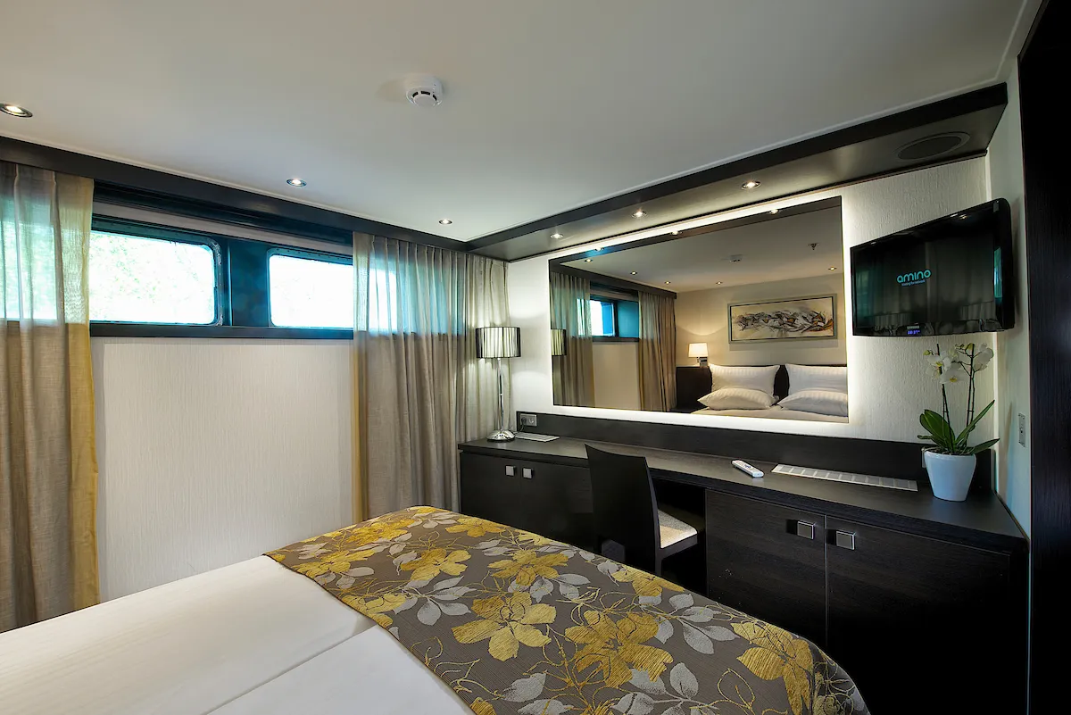 One of the highlights of the Avalon Expression is its spacious accommodations. The ship boasts two full decks of Panorama Suites, which are 30% larger than the industry standard. These suites are known for their wall-to-wall, floor-to-ceiling windows that turn the room into a luxurious, open-air balcony. The Panorama Suites feature deluxe beds that face the windows, so guests can enjoy uninterrupted views of the passing European countryside as they relax in comfort.