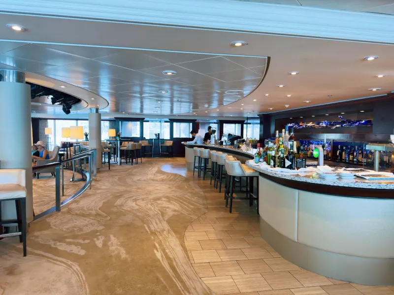 The pool area on the Azamara Quest is a hub of relaxation, featuring a saltwater pool, two whirlpools, and comfortable loungers. It's the perfect spot for unwinding and taking in the sea views. The ship also has various bars and lounges to suit every taste, whether you prefer a quiet cocktail or lively socializing.