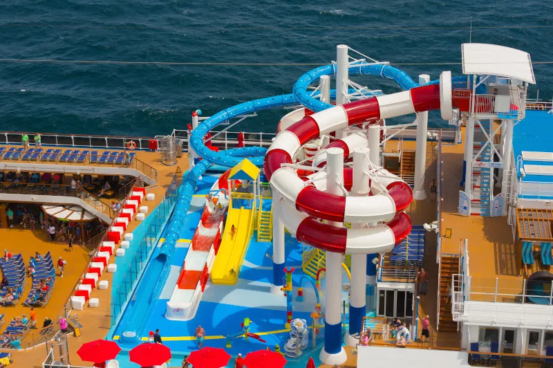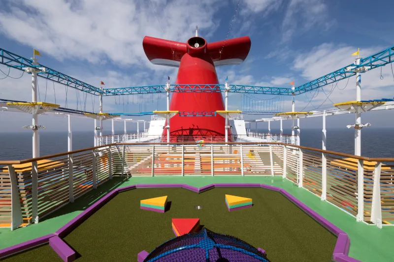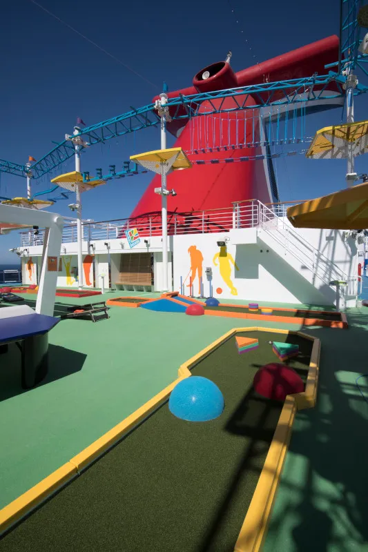 One of the standout features of the Carnival Horizon is its entertainment offerings. Guests can enjoy a variety of shows and activities throughout their cruise. The Liquid Lounge is the ship's main theater, where Broadway-style productions, comedy shows, and musical performances take place. For those who enjoy a bit of competition, the SkyRide, an outdoor cycling experience suspended above the ship, and the WaterWorks aqua park with thrilling water slides provide endless fun.