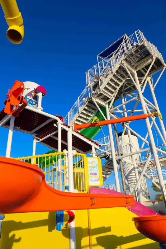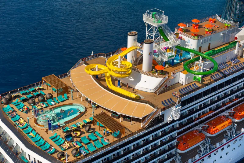 The Carnival Legend boasts several swimming pools and whirlpools, making it perfect for those looking to soak up the sun. The Green Thunder Water Slide, a thrilling waterslide, is a favorite among thrill-seekers.