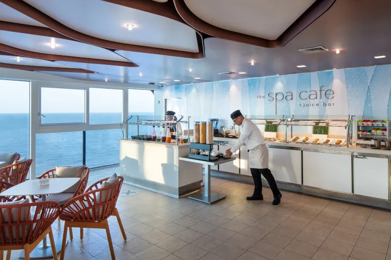 The Celebrity Apex prioritizes guest well-being with its onboard spa and fitness facilities. Passengers can relax and rejuvenate at the luxurious Spa by Canyon Ranch, indulge in beauty treatments, or take part in wellness classes. Fitness enthusiasts can stay active at the well-equipped fitness center and outdoor sports facilities. There is also a Rooftop Garden for peaceful relaxation and yoga sessions.