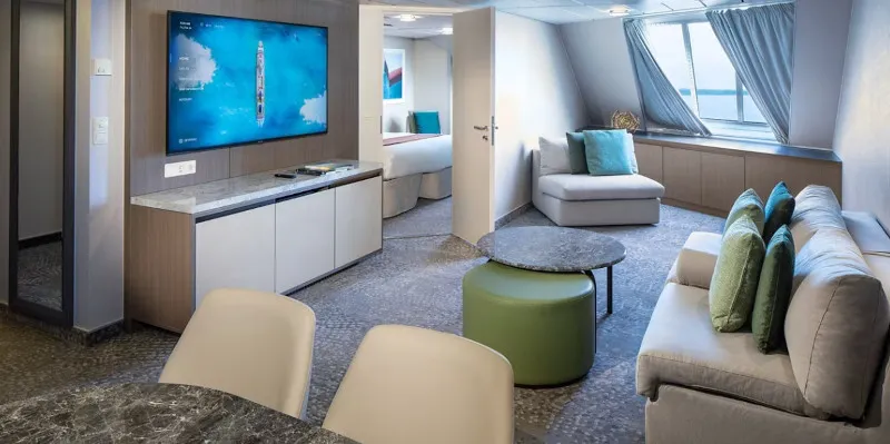 For those seeking the ultimate indulgence, the ship offers a selection of stunning suites, including the opulent Reflection Suite with its all-glass shower extending over the edge of the ship. Suite guests also enjoy access to a private lounge and an exclusive restaurant, Luminae, known for its exquisite cuisine.