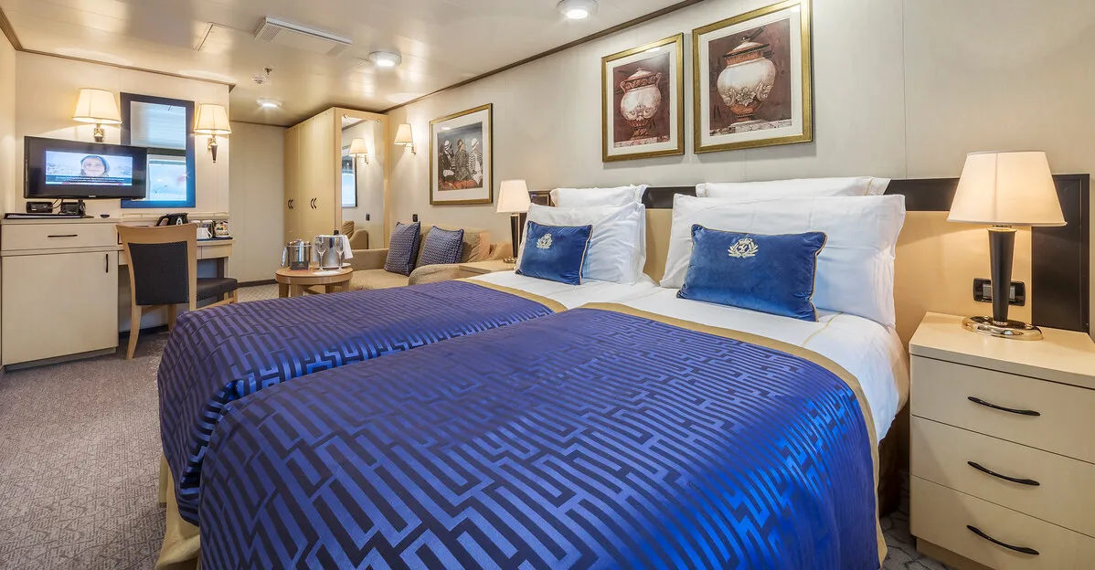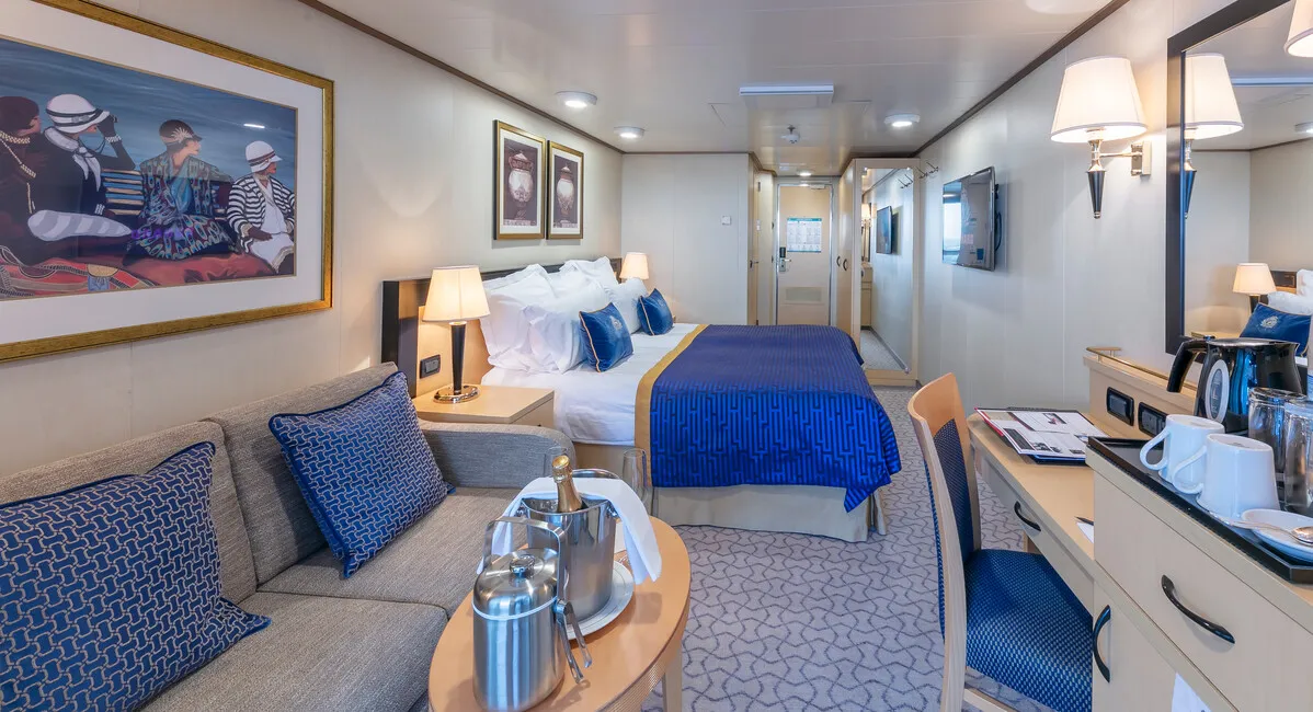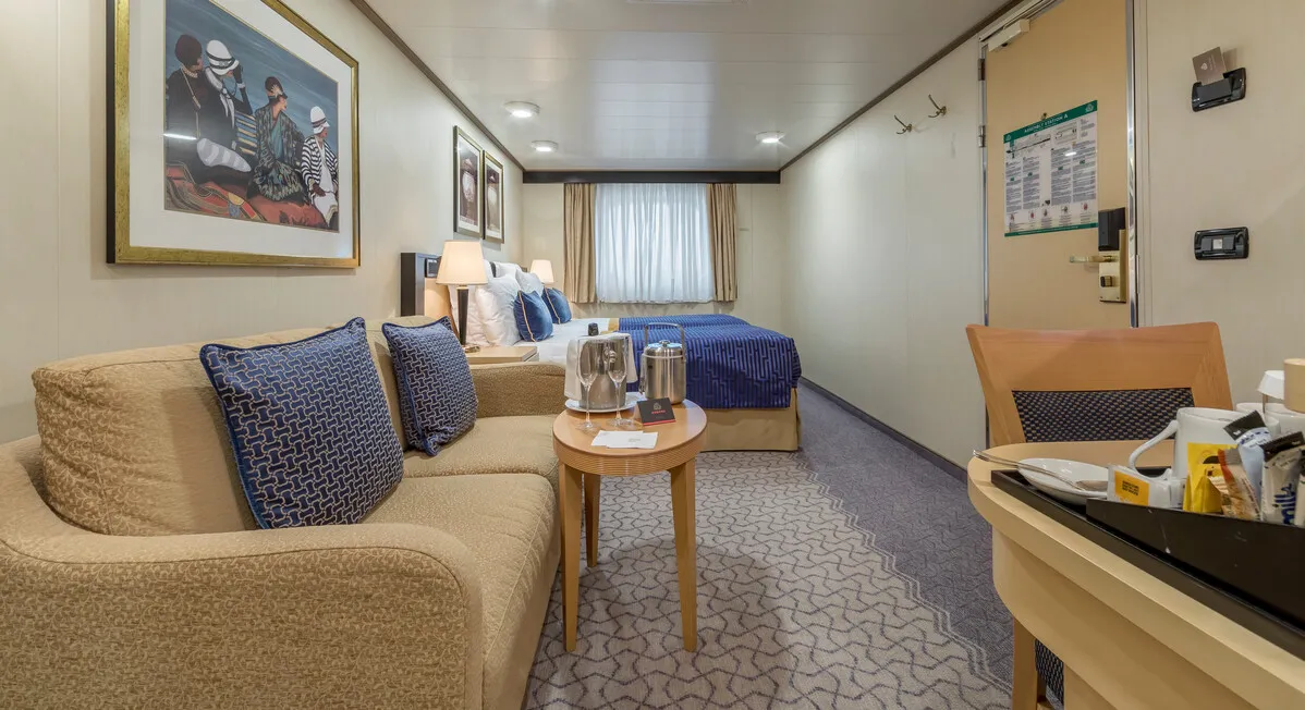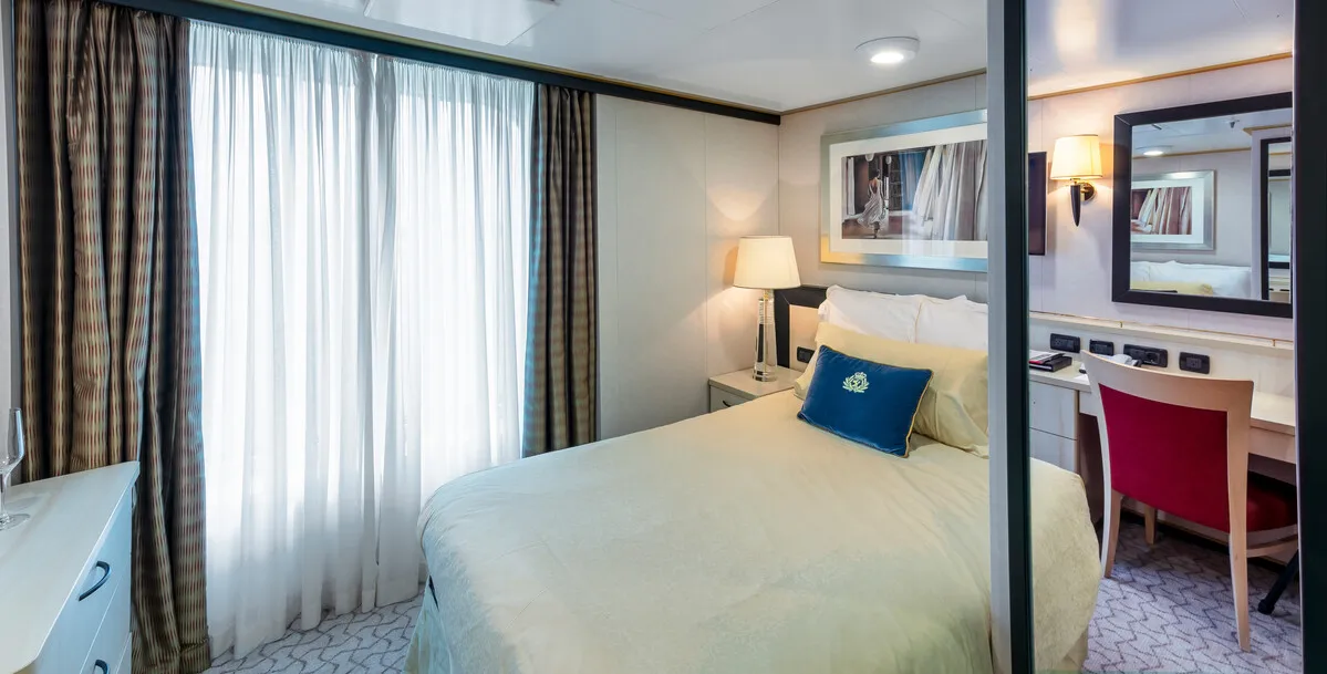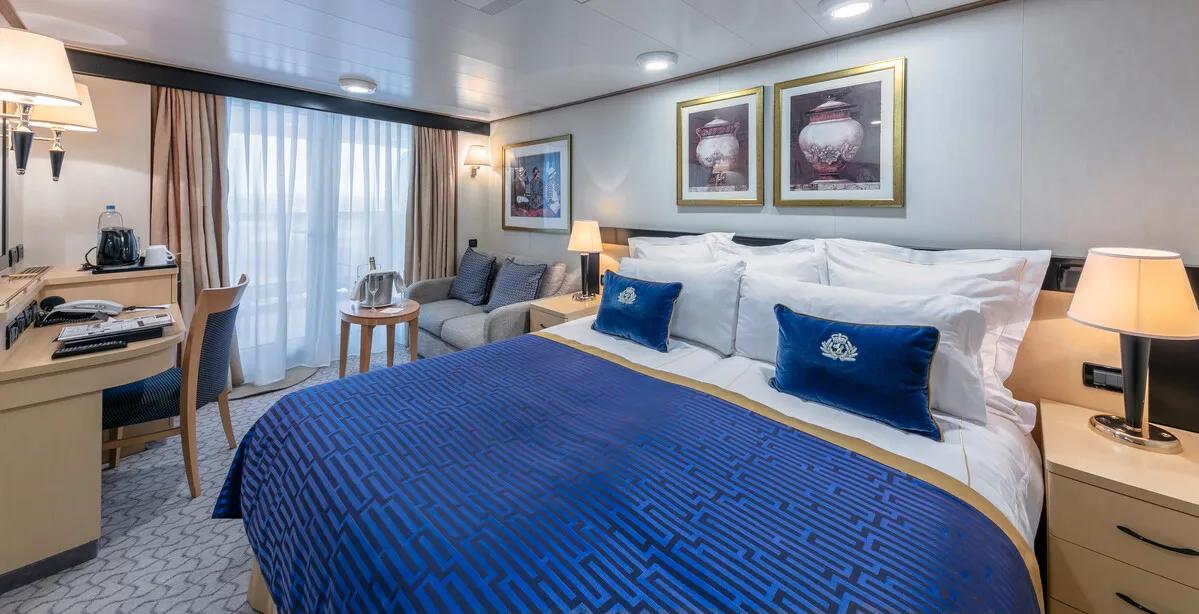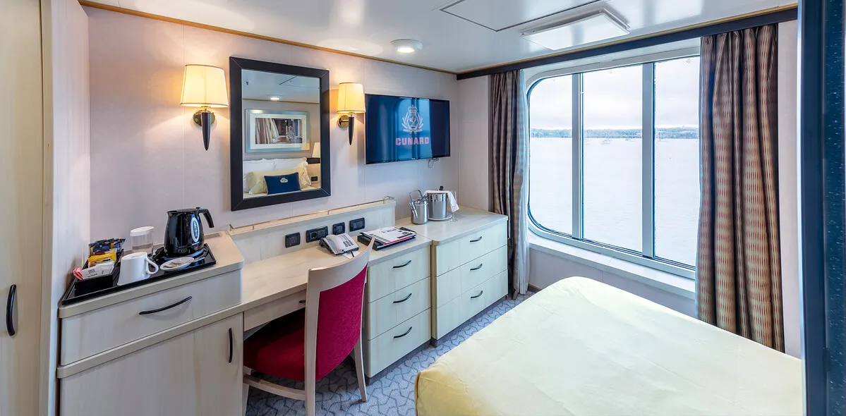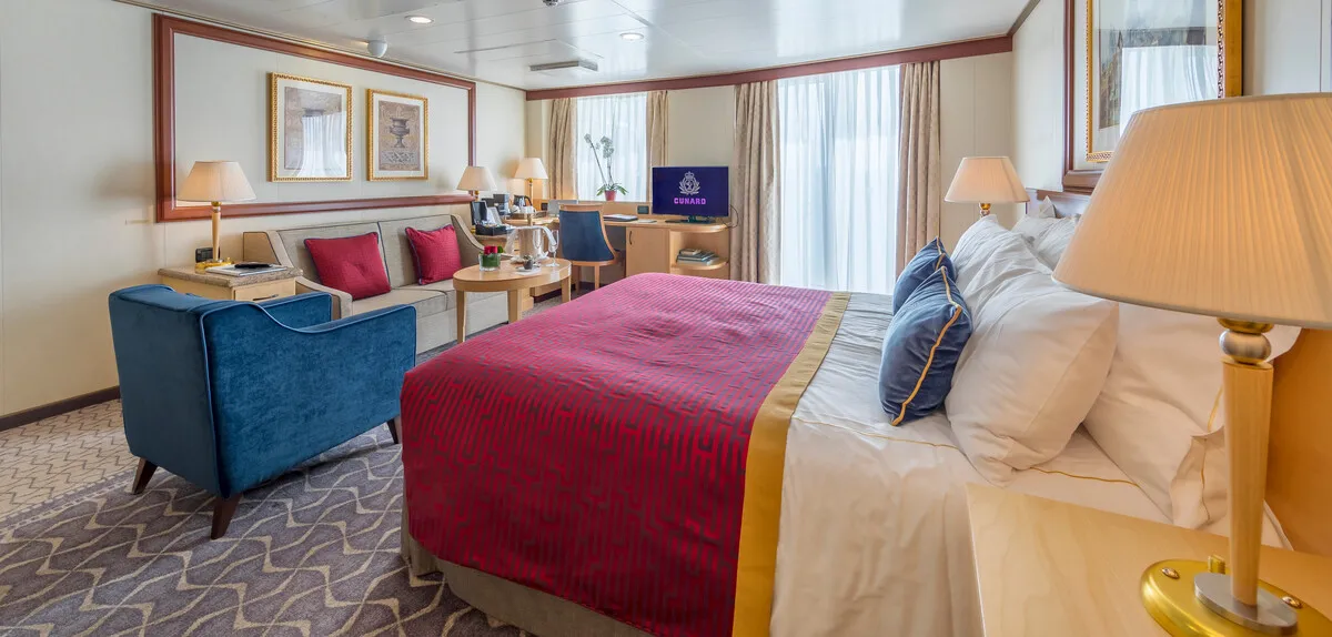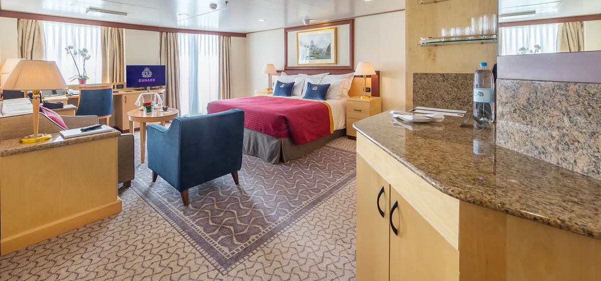The Cunard Queen Elizabeth offers a range of staterooms and suites, each designed to provide passengers with a comfortable and opulent experience. The Britannia staterooms offer a traditional cruising experience, while the Grills Suites provide a more exclusive and personalized service, including private dining venues and lounges. The Queen's Grill and Princess Grill Suites offer the utmost in luxury and space, ensuring a sumptuous experience throughout your voyage.