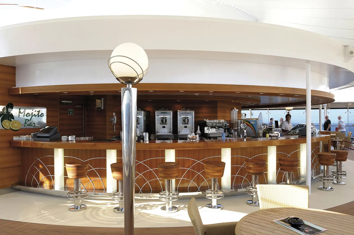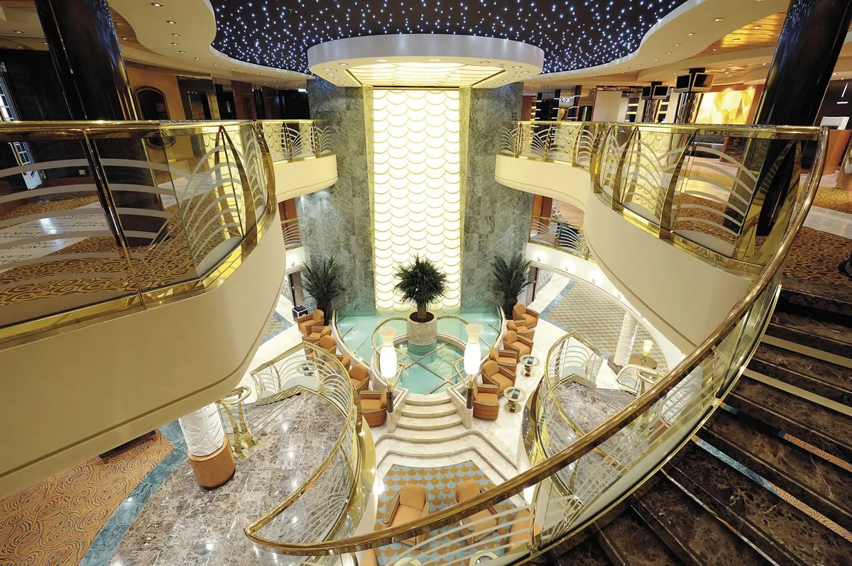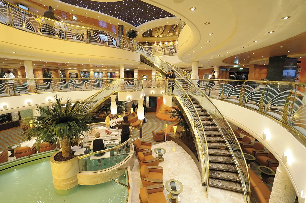 The ship's interior is adorned with Italian craftsmanship, providing a sophisticated ambiance. Guests can expect a blend of contemporary design and classic luxury throughout the ship's public spaces, restaurants, and lounges.