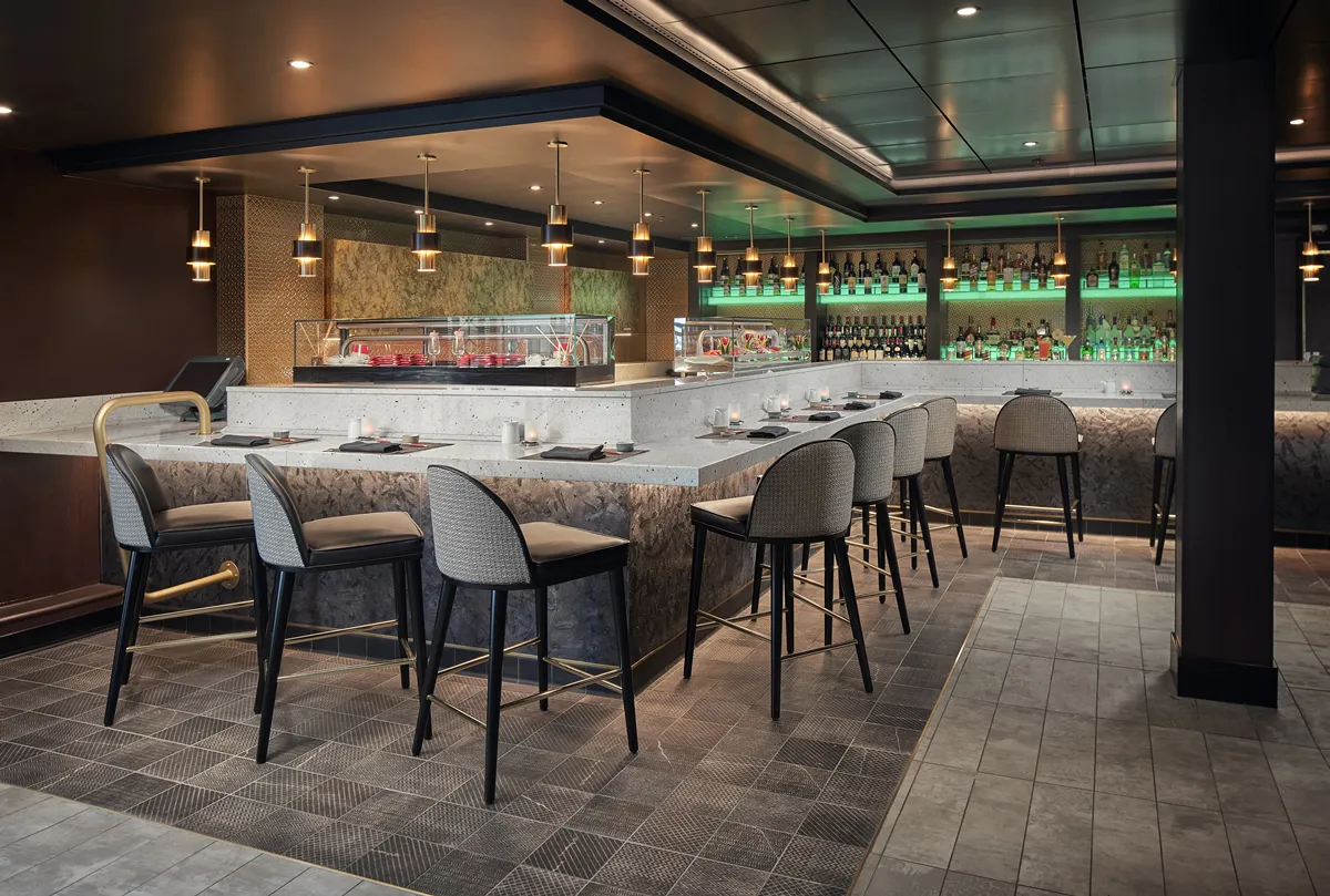 A fully-equipped casino where passengers can try their luck with slot machines, poker, blackjack, and more.
