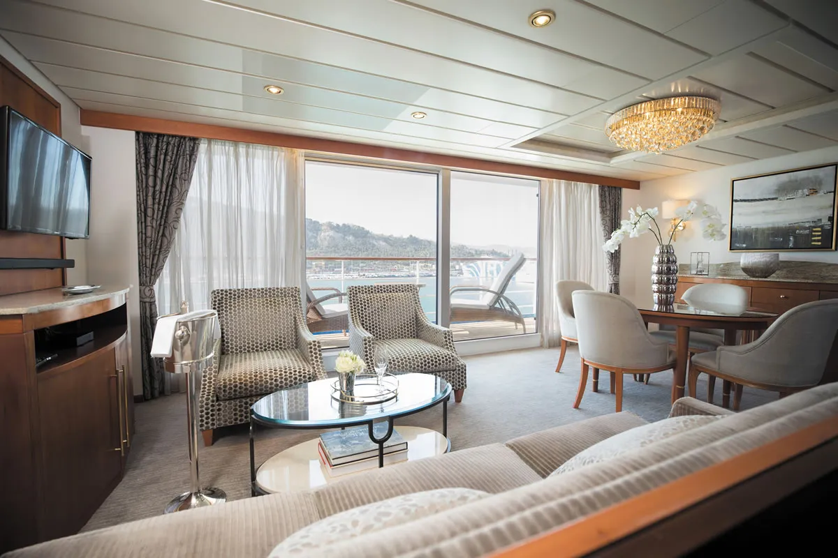 The Regent Seven Seas Mariner is celebrated as the world's first all-suite, all-balcony cruise ship, offering spacious and elegantly appointed suites. Each suite, ranging from 300 to nearly 4,000 square feet, is designed with the utmost attention to detail. Guests can enjoy a personal butler service in the higher-category suites, ensuring their every need is catered to, from unpacking luggage to arranging in-suite dining.