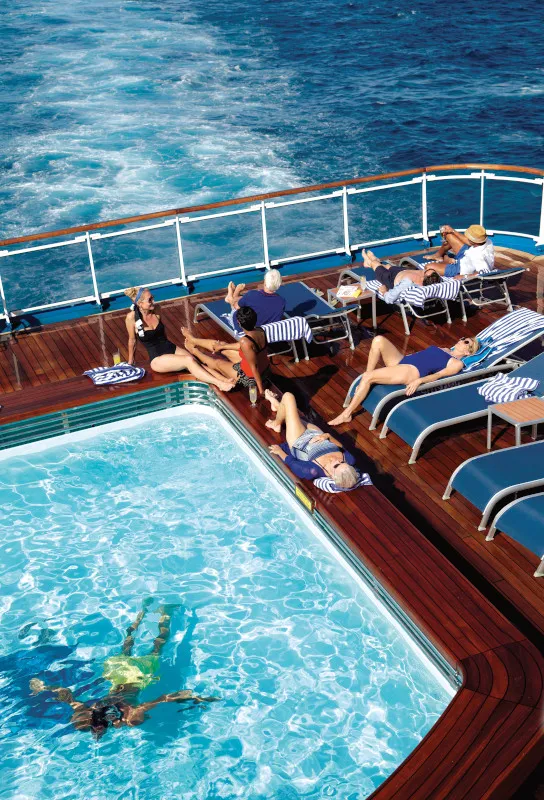 One of the ship's standout features is Movies Under the Stars, where passengers can watch the latest films and concerts on a massive outdoor screen while enjoying the fresh sea air. Additionally, there are numerous bars, nightclubs, and a casino for those looking to unwind and enjoy a lively night out.