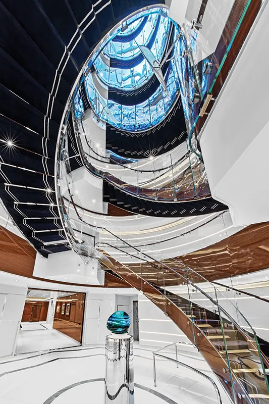 Evening entertainment includes performances by talented musicians, singers, and comedians in the Grand Salon, while the Observation Lounge offers a more intimate setting for enjoying a drink while listening to live piano music.