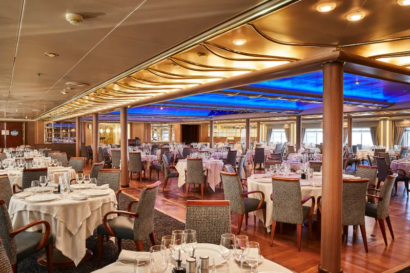 Dining aboard the Silversea Cloud is a gourmet experience, with multiple venues offering diverse culinary options. The ship’s main restaurant serves a range of international dishes, prepared with the freshest ingredients and accompanied by an extensive wine list. For those seeking a more intimate dining experience, La Dame offers exquisite French cuisine in an elegant setting, while The Grill provides a unique outdoor dining experience where guests can cook their meals on hot stones at their table.