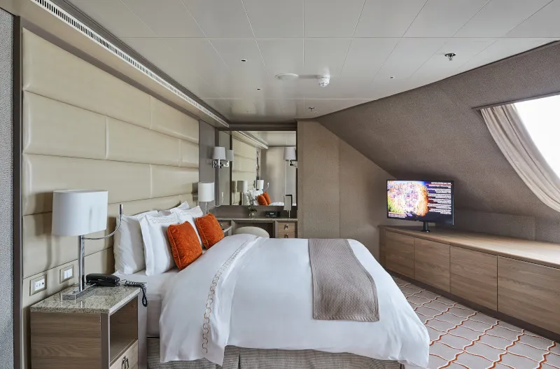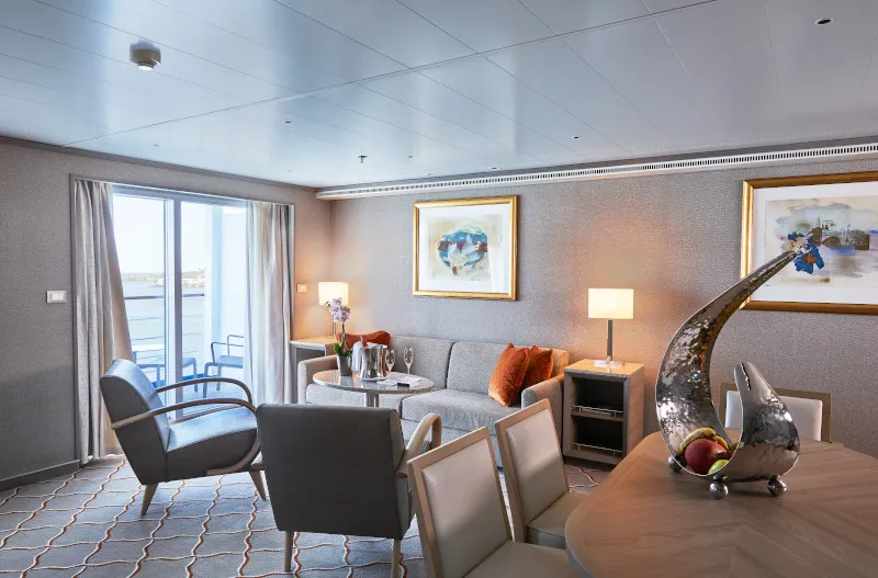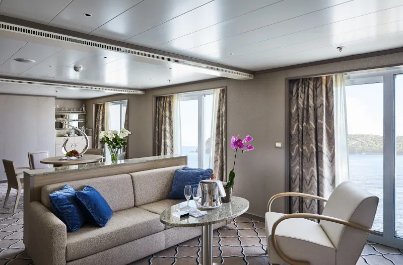 The ship’s design reflects the elegance of a classic luxury yacht, with a sleek profile and tasteful interiors that exude sophistication. Accommodations on the Silversea Shadow are exclusively suites, all of which feature ocean views, with the majority offering private verandas. These suites range from the well-appointed Vista and Veranda Suites to the spacious Silver, Royal, Grand, and Owner’s Suites. Each suite is equipped with high-end amenities such as marble bathrooms, walk-in closets, and plush bedding, providing a home away from home with a touch of opulence.