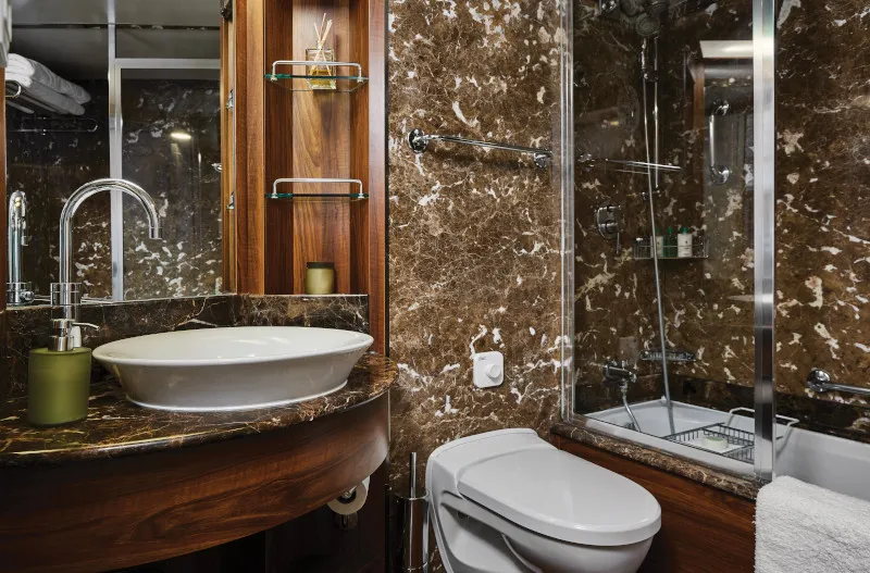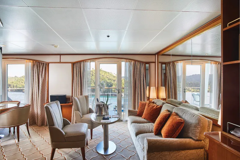The suites aboard the Silversea Wind are spacious and thoughtfully appointed. All accommodations are ocean-view, and most feature private verandas, allowing guests to enjoy panoramic views of the sea from the comfort of their own space. Each suite is equipped with a marble bathroom, a walk-in wardrobe, and a separate sitting area, providing all the comforts of home—plus a few luxurious extras. The personalized butler service, a hallmark of Silversea, ensures that every guest's needs are anticipated and met with grace and efficiency.